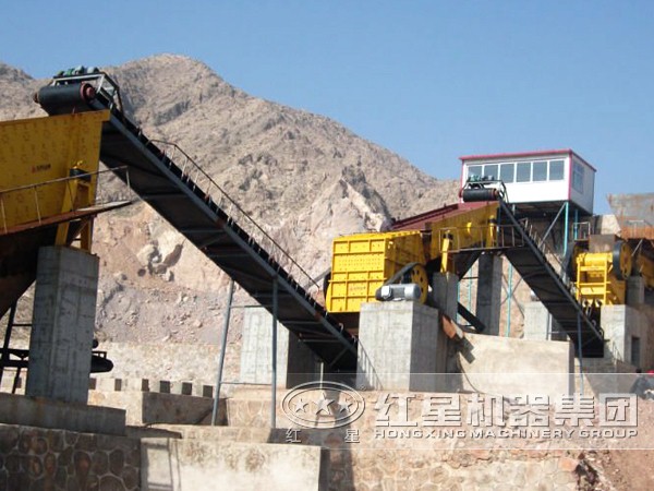 【組成部件】:石料破碎工藝流程由振動給料機、顎式破碎機、反擊式破碎機、振動篩、膠帶輸送機、集中電控等設(shè)備組成。